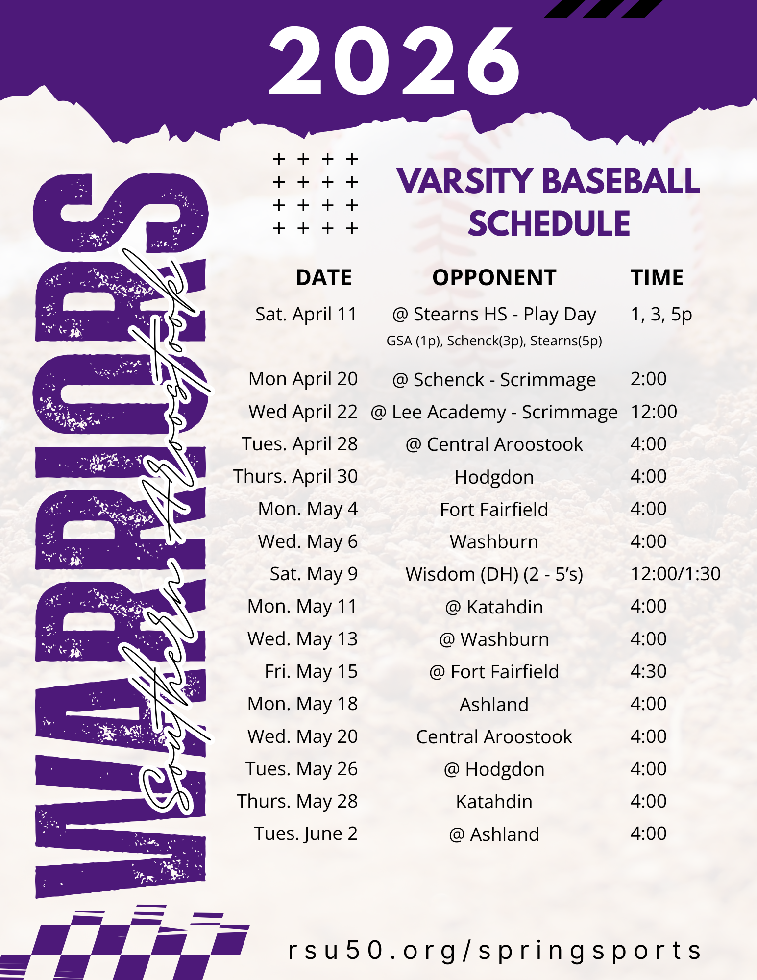 2026 Spring Sports Schedules