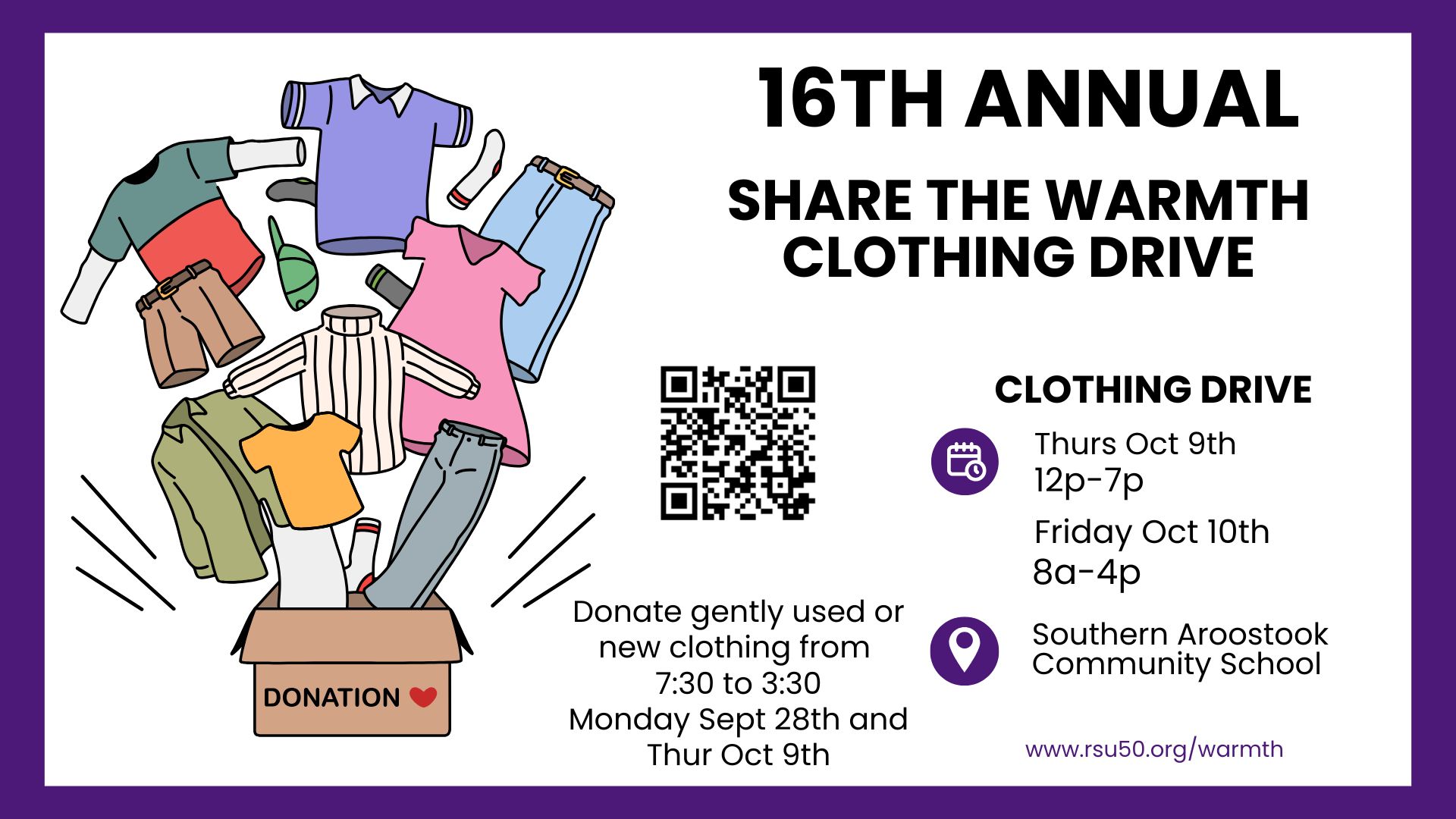 “Share the Warmth” is a clothing drive for everyone in our community. This is how it works;